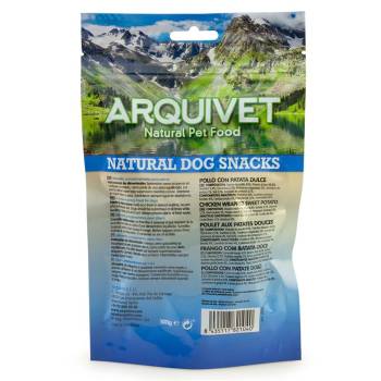 Snack de patata y carne de pollo enrollada. 100% natural. Con un alto contenido en proteína animal y con pocas grasas (Producto Light). Alimento complementario para su perro, muy rico en nutrientes.